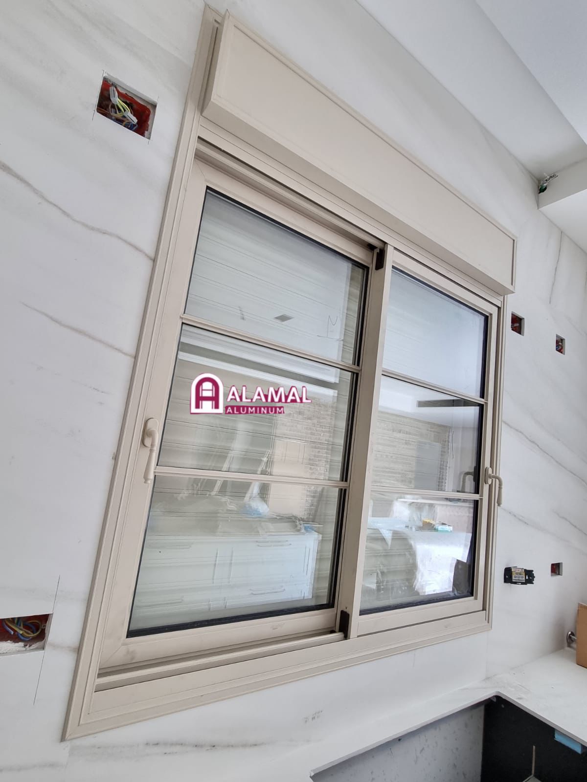 شباك 7600 مع قواطع تلزيق مع اباجور